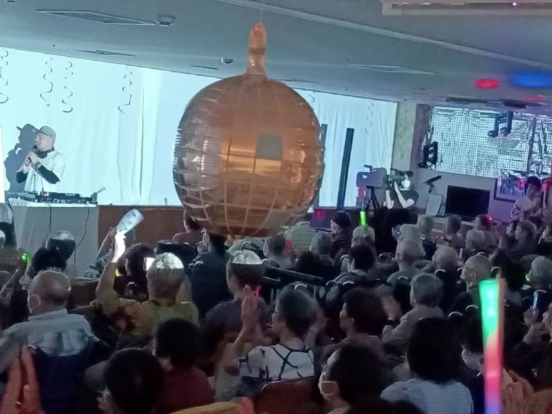 (※)ロマンディスコ:ご高齢者向けの音楽イベント。介護福祉士であるDJ玄(げん)さんが主催。撮影当日、会場は大変な熱気に包まれていました。